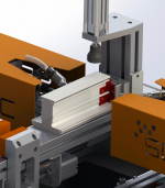 - Atornillado automático de conectores de montante usados en perfiles de montante de PVC de distintas series y tamaños; posicionamiento y presión simultáneos por ambos lados en un solo ciclo